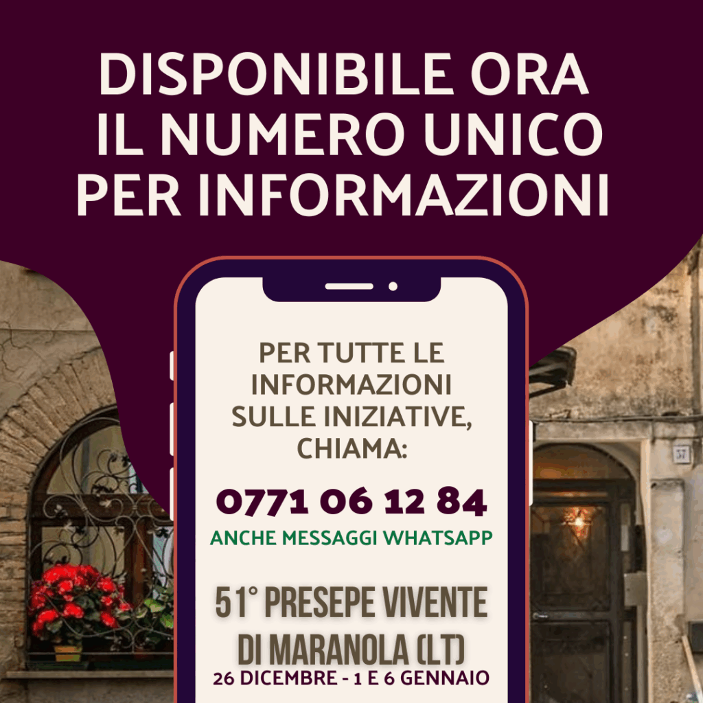 Per informazioni potete contattare il numero unico 0771 061284, anche su whatsapp.